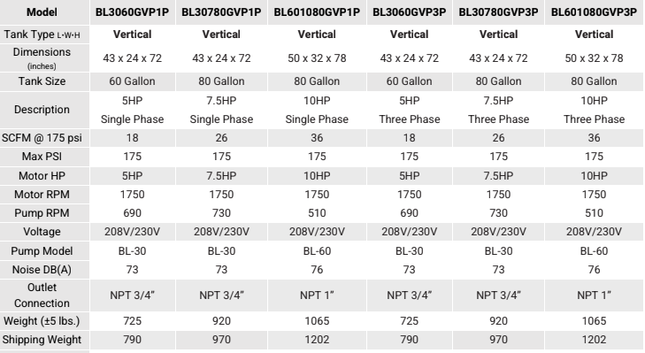 The EL-AV vertical tank designed for optimal performance and reliability. Ideal for various applications, this tank is part of the EL-AV series, known for its durability and efficiency in compressor operations. Perfect for both commercial and industrial use, it ensures consistent performance and longevity. Available from 60 gallon to 80 gallon and 5 horsepower to 10 hp, EL-AV has a tank for wide range of applications!