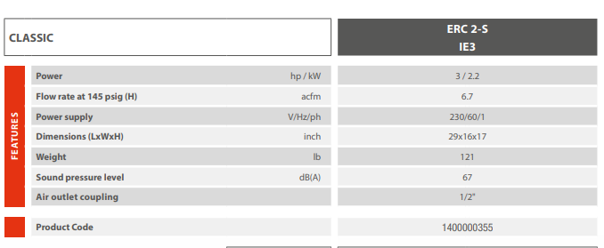 The Mattei Classic ERC 1- 2 Compressor line are designed as an energy-saving, rotary-vane compressor at an entry-level price.