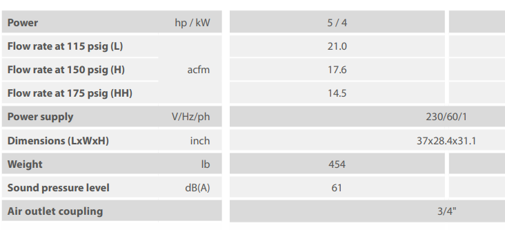 The Mattei Blade 4s is a rotary vane, belt driven air compressor that is easy to use and has versatile application use. The 4s is perfect for small and medium sized businesses.