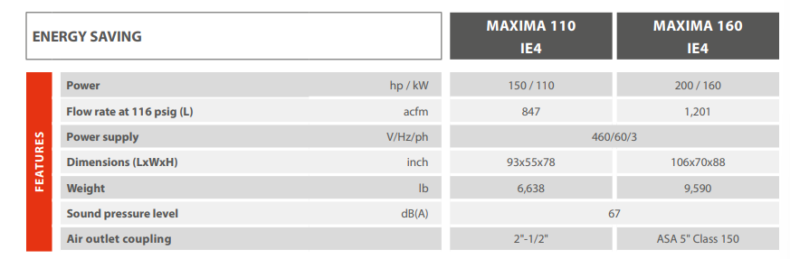 The Mattei Maxima 160 compressor is the ultimate higher horsepower model for companies looking for maximum power and energy savings.